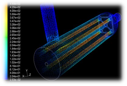 CFD(Computational Fluid Dynamics计算流体动力学)模拟: 优化反应器内部流速及紫外强度分布,使得紫外光均匀照射至整个反应器内部。避免反应器内短流、紫外光强度分布不均等情况。 | ![]() |